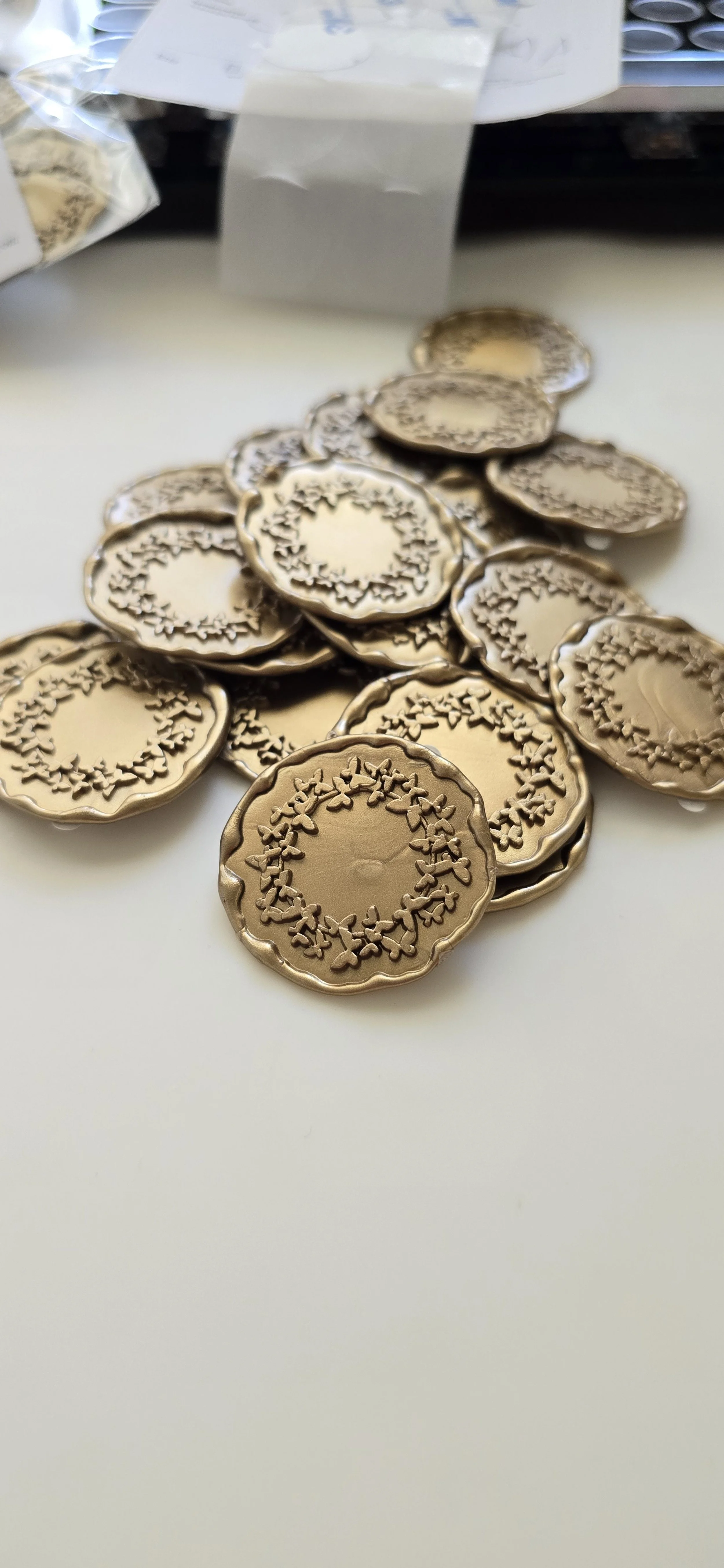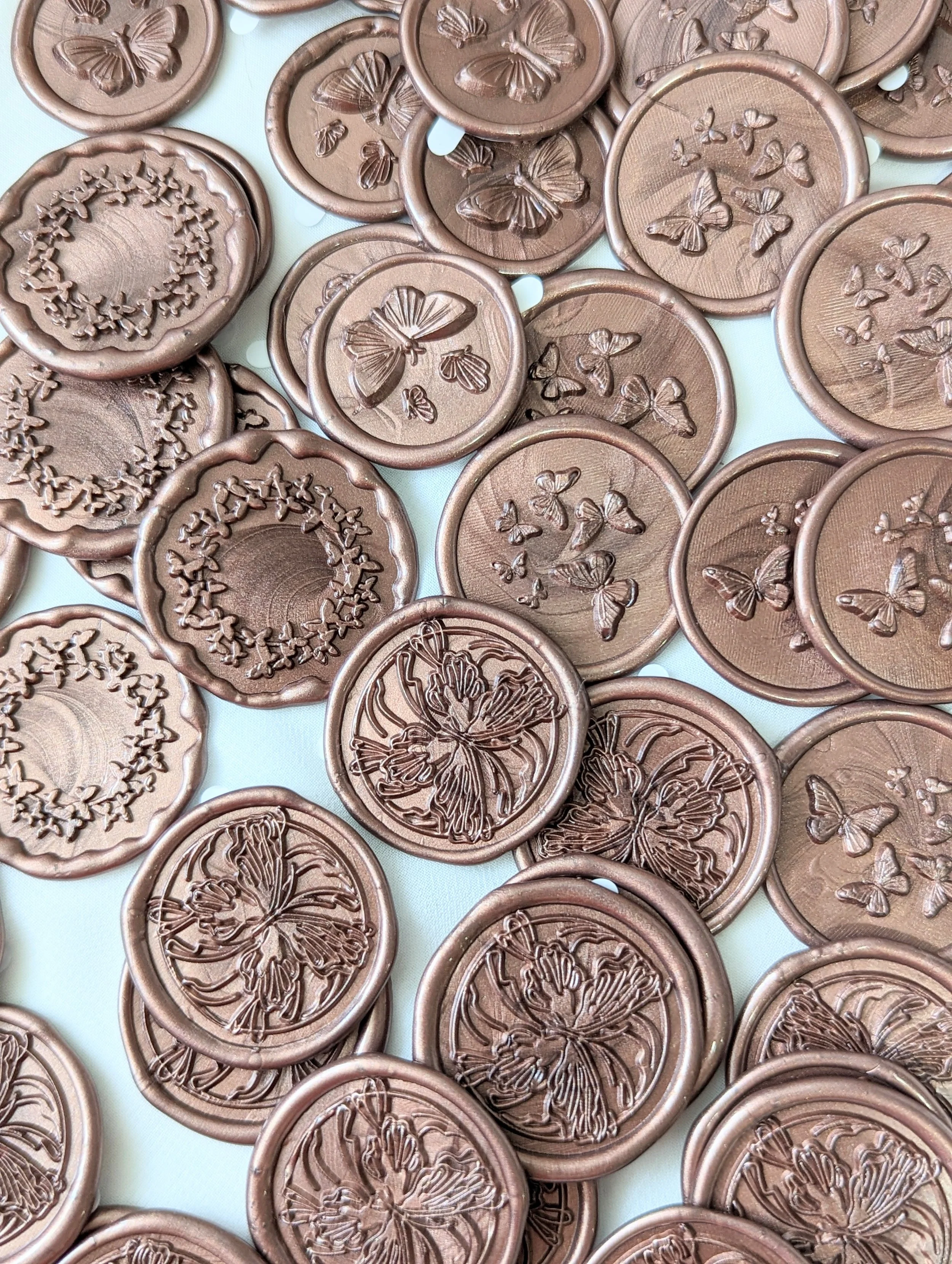 - Each wax seal is hand stamped and due to the material, there may be a slight variation in size/shape.