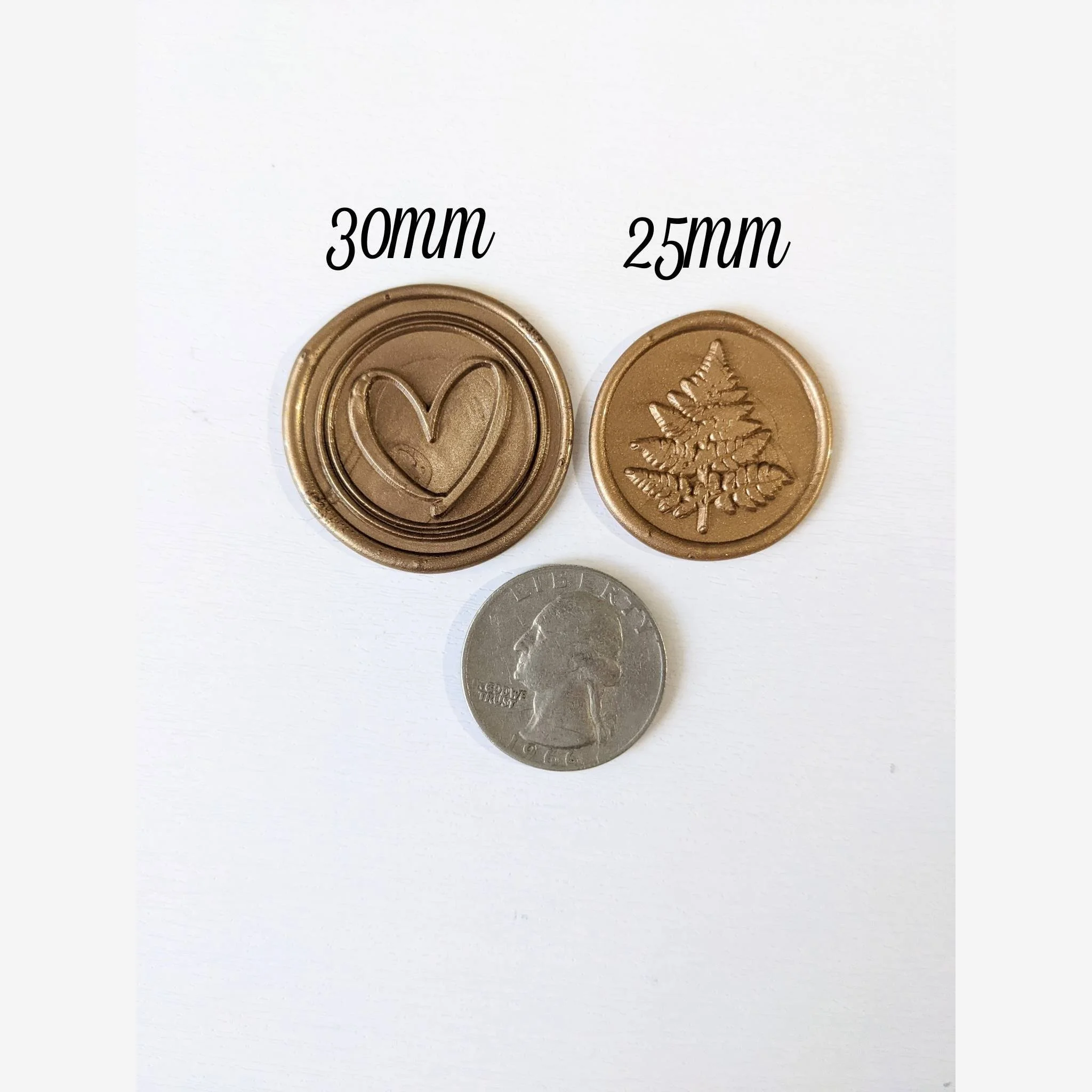 - Each wax seal is hand stamped and due to the material, there may be a slight variation in size/shape.