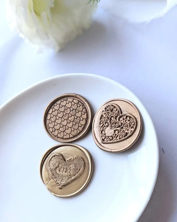 - Each wax seal is hand stamped and due to the material, there may be a slight variation in size/shape.