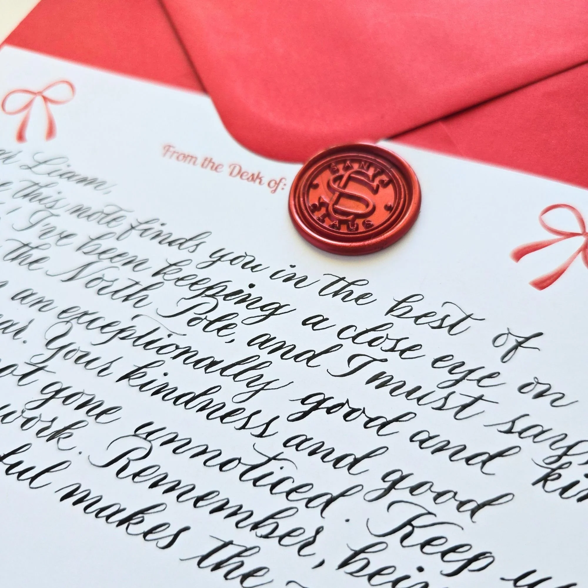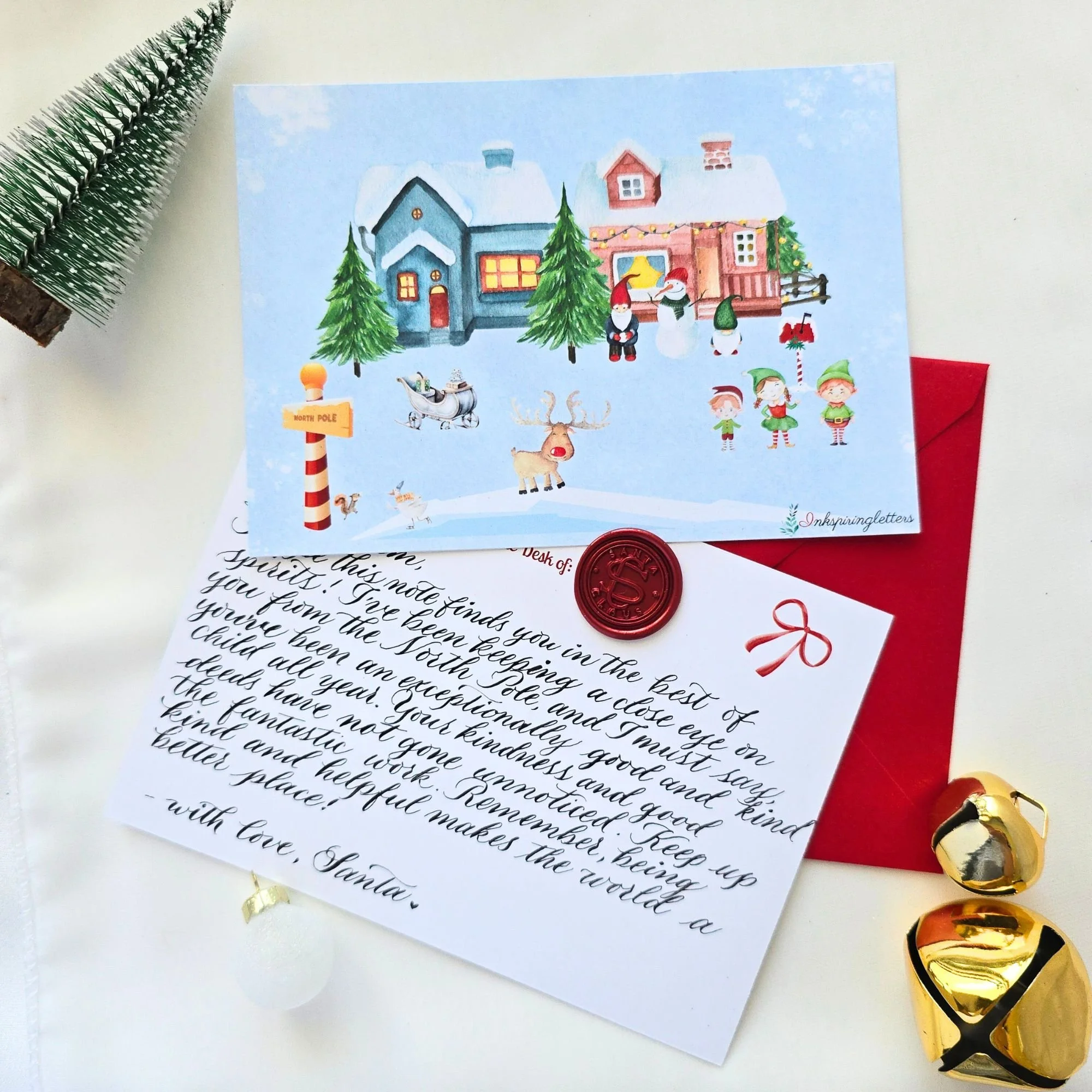 Includes a handwritten note that can be personalized with the child's name and envelope featuring a North Pole watercolor scene